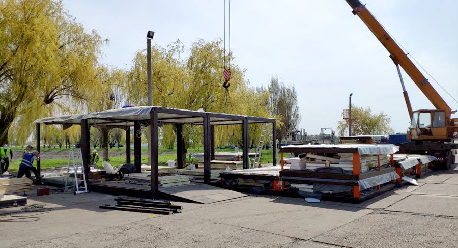 Kontenery blokowe są usuwane z maszyny za pomocą specjalnego manipulatora dźwigowego i natychmiast montowane. Średnio instalacja jednego bloku kontenerowego zajmuje nie więcej niż dwie godziny.